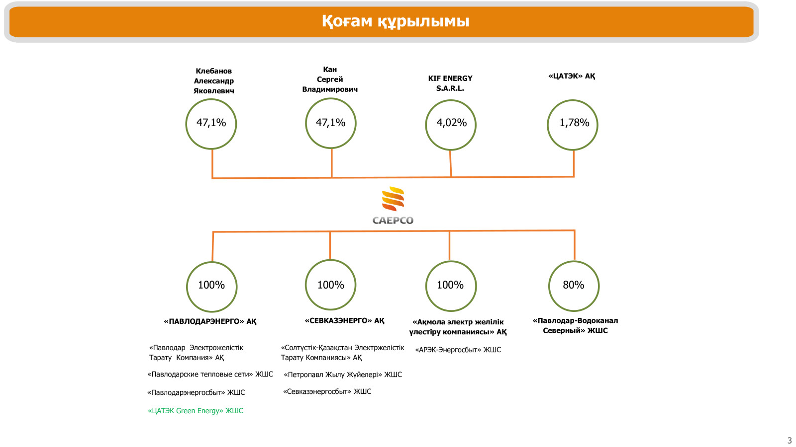 2025 жылғы 15 қыркүйектегі жағдай бойынша «ОАЭК» АҚ акционерлік капиталының құрылымы: