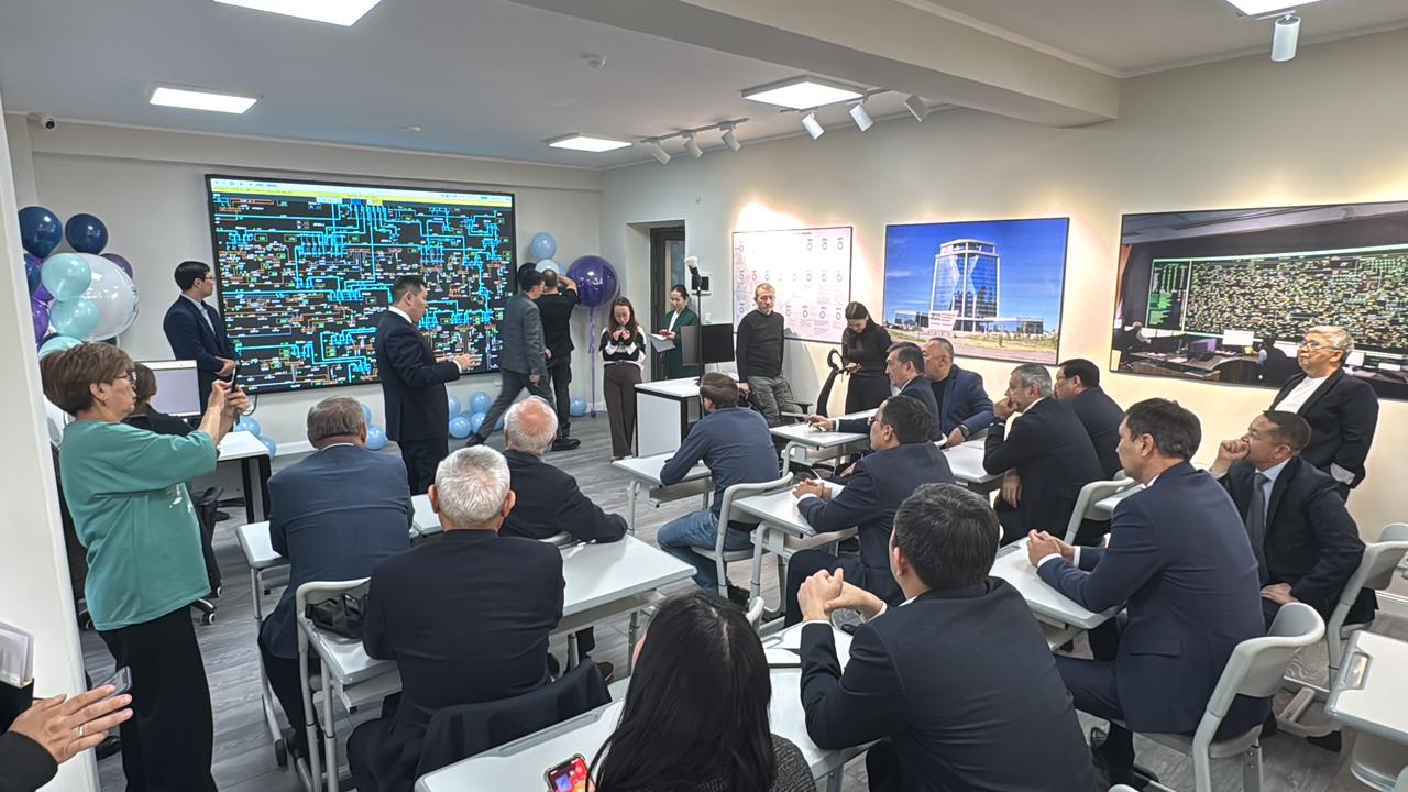 Учебно-тренировочное пространство оснащено современной техникой: видеостеной, рабочими станциями для инструкторов и студентов, а также специализированным программным обеспечением – SCADA и тренажером диспетчера DTS. В цифровой среде центра развернута актуальная схема энергосистемы Казахстана, включающая действующие электростанции, подстанции и линии электропередачи.